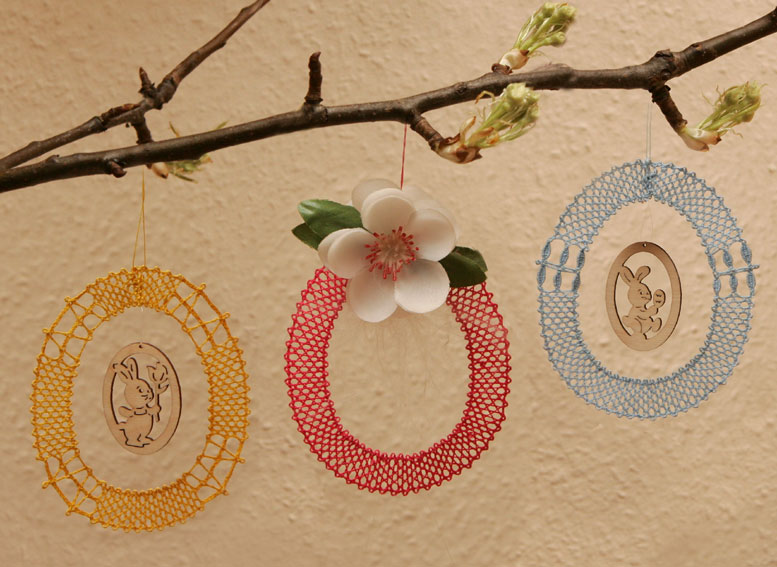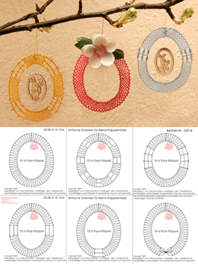Klöppelbrief "Ostereier" bestehend aus 1 Seite A4 Klöppelbrief mit Anleitung und Fotos für kleine Klöppelmädel 6 einfache Motive 6,7 cm * 8 cm Bestell-Nr. F014