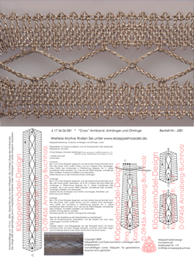 081 Klöppelbrief Schmuck-Anhänger+Armband+Ohrringe "Cross“
