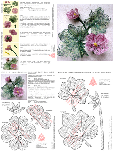 Klöppelbrief Keilrahmenbild "Malven in Bertas Garten“