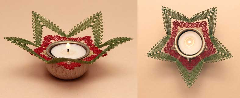 Klöppelbrief Stern „Perlenkranz“ für Teelichthalter