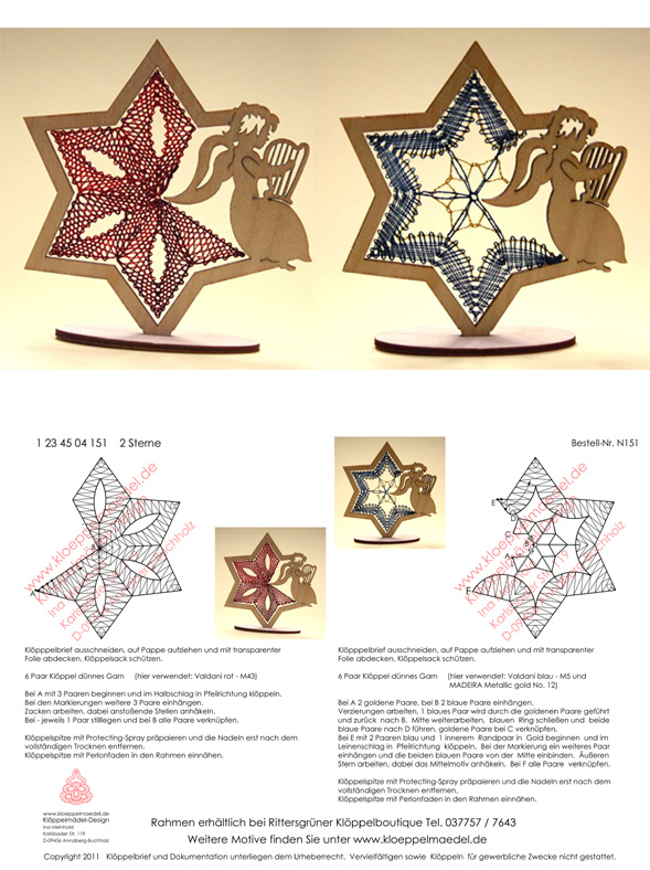 151 Klöppelbrief "2 Klöppeleinsätze für Rahmen Stern mit Engel"