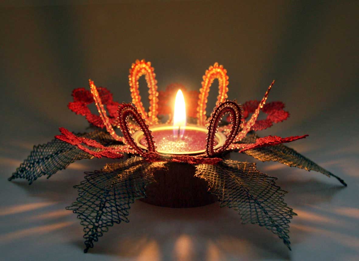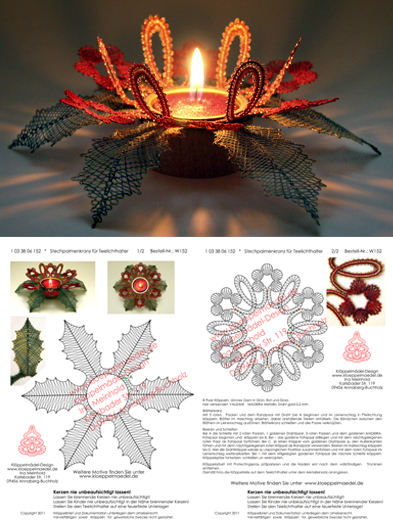 Klöppelbrief „Stechpalmenkranz“ für Teelichthalter