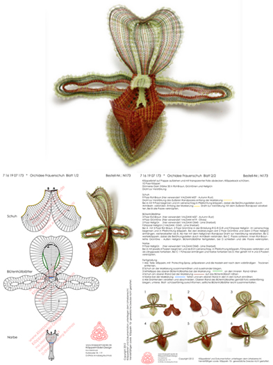 173 Klöppelbrief Orchidee „Frauenschuh“