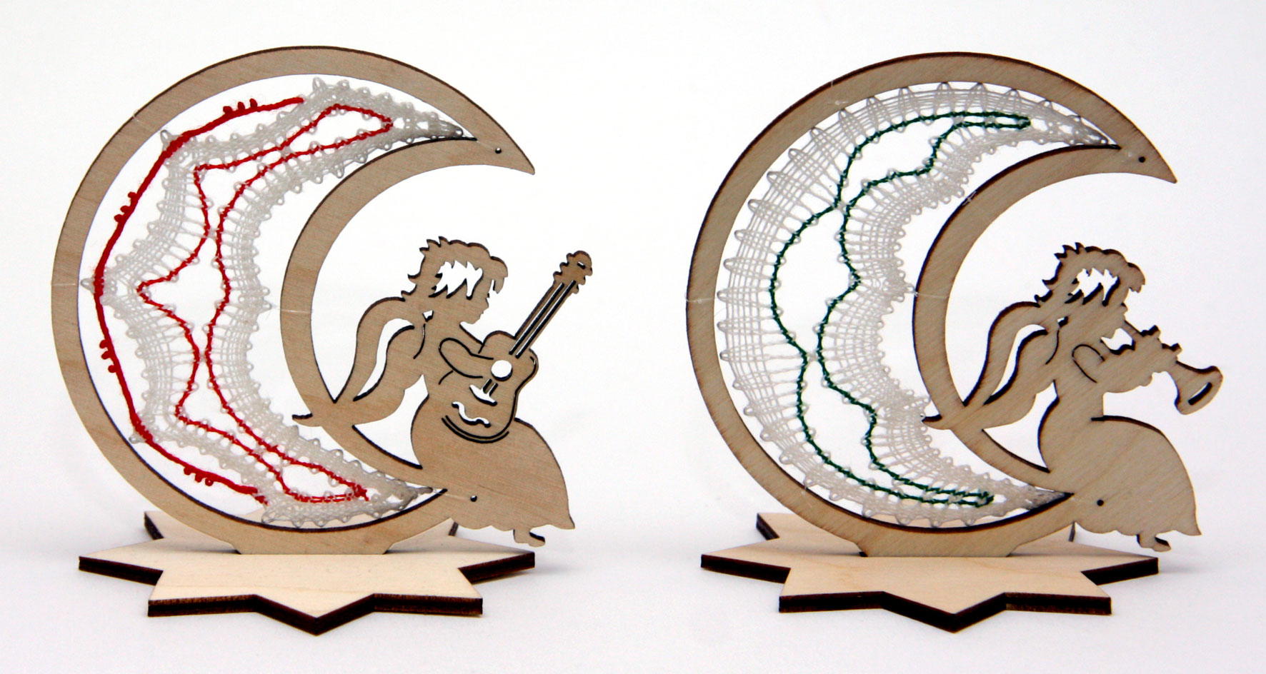 Klöppelbrief "2 Klöppeleinsätze für Rahmen Mond mit Engel