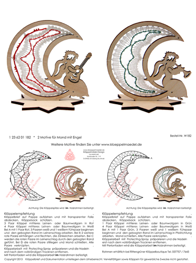 182 Klöppelbrief "2 Klöppeleinsätze für Rahmen Mond mit Engel"