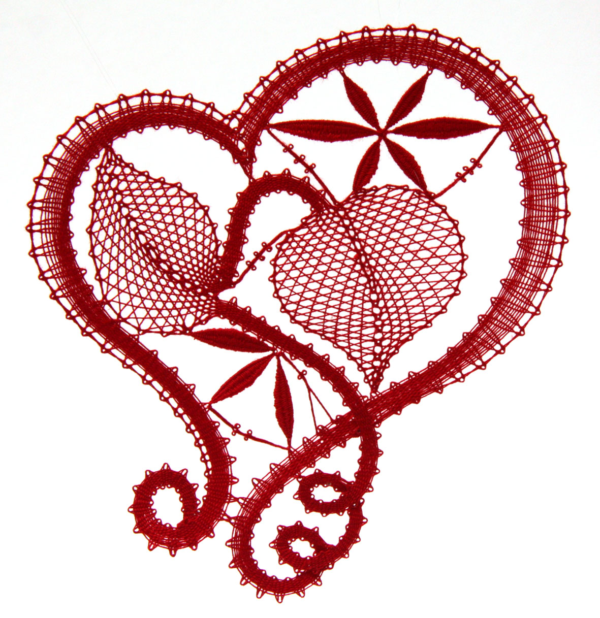Klöppelbrief Großes Valentinsherz „Blüten und Blätter“