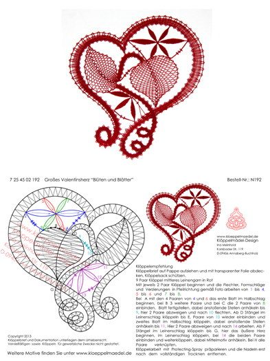 192 Klöppelbrief Großes Valentinsherz „Blüten und Blätter“