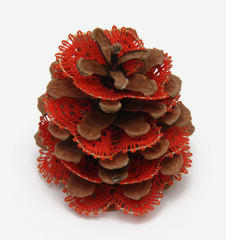 193 Klöppelbrief "Große Fächerspirale" für Kiefernzapfen