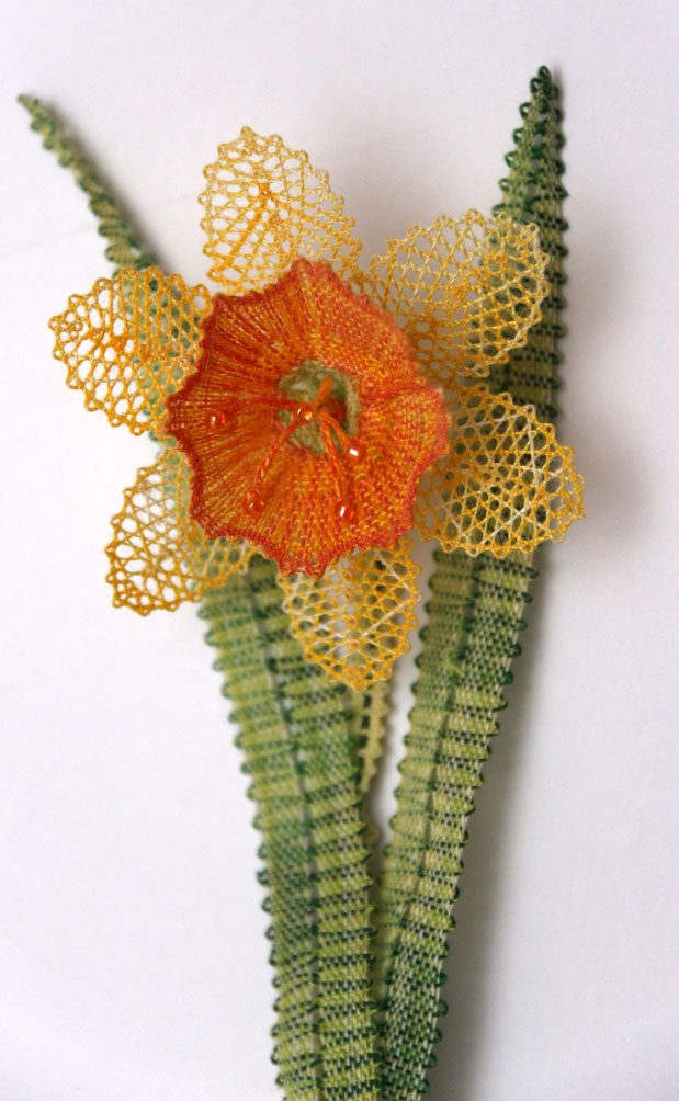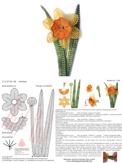 140 Klöppelbrief "Narzisse" (Osterglocke) - Blümchen in 3D-Optik
