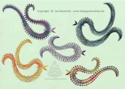 Motive, bei denen man verschiedene Klöppelmuster ausprobieren kann,