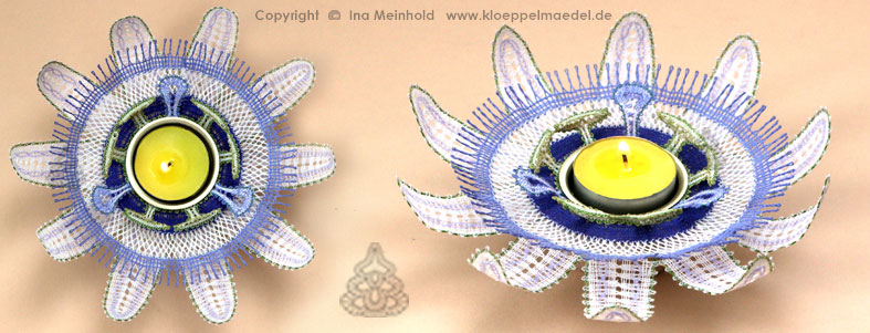 Klöppelbrief „Passionsblume" für Holz-Teelichthalter