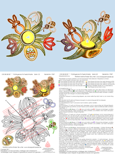Klöppelbrief „Frühlingskranz" für Holz-Teelichthalter