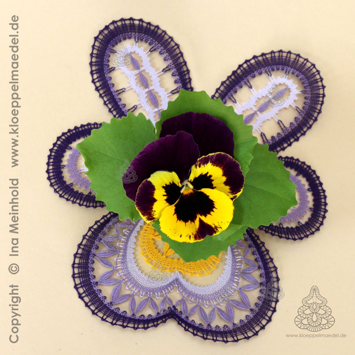 Klöppelbrief Blütendeckchen "Viola“