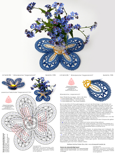 398 Klöppelbrief Blütendeckchen "Vergissmeinnicht"