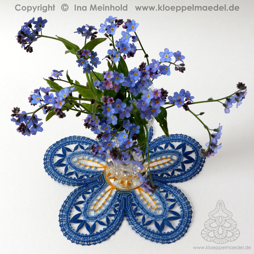 Klöppelbrief Blütendeckchen "Vergissmeinnicht"