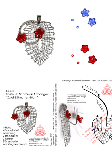 402 Klöppelschmuck Bastelset „Zwei-Blümchen-Blatt“