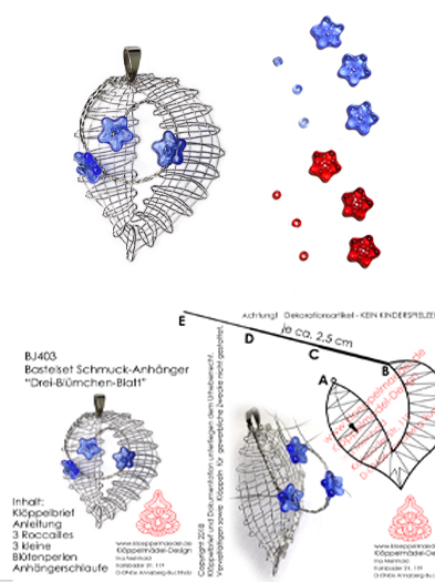 403 Klöppelschmuck Bastelset „Drei-Blümchen-Blatt“