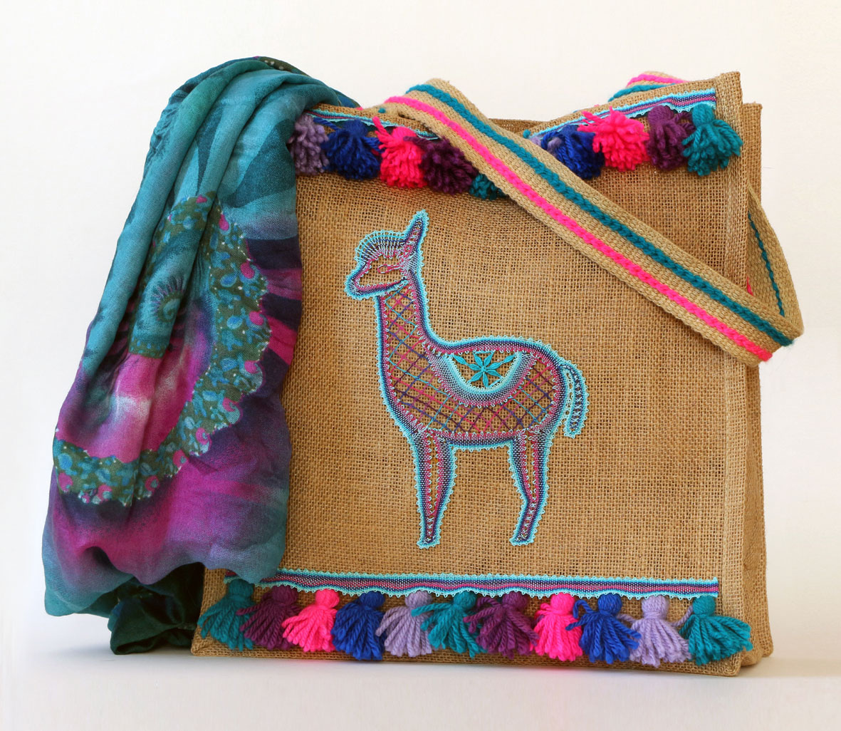 Klöppelbrief "Lama - Alpaka" mit Anleitung zum Verzieren der Tasche