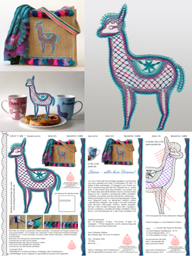 408 Klöppelbrief "Lama - Alpaka" mit Anleitung zum Verzieren der Tasche