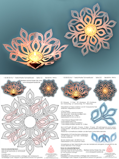 Klöppelbrief „Schneeflocke“ für Holz-Teelichthalter