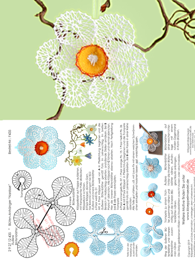 435 Klöppelbrief "Narzisse" in 3D-Optik zum Aufhängenbestehend aus 1 Seite A4