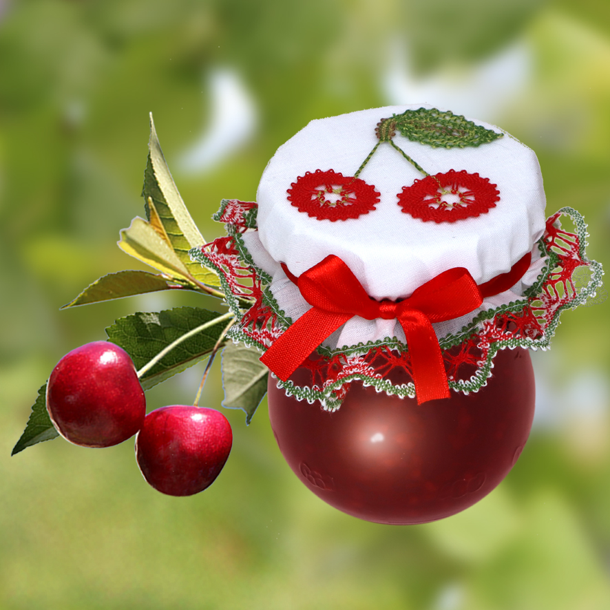 Klöppelbrief Deko für Marmelade-Gläser "Kirsche"