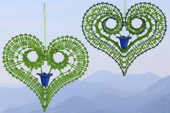 Klöppelbrief Herz in zwei verschiedenen Varianten