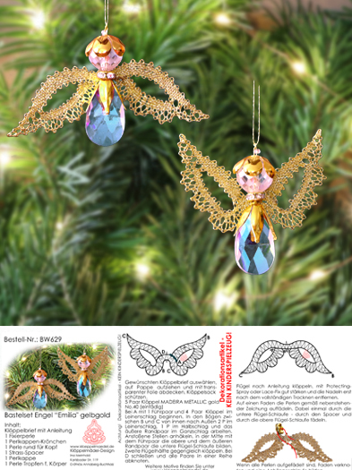 Perlen klar verspiegelt und Zubehör in Goldfarbe für einen Perlenengel