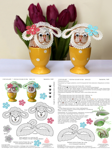 459 Klöppelbrief Hütchen „Schafe" für Eier