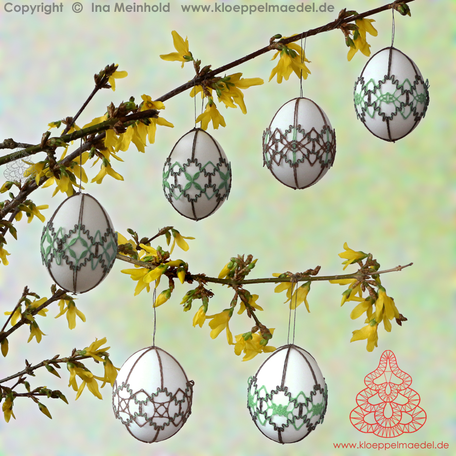 Klöppelbrief Verzierungen für Ostereier mit 6 verschiedenen Mustern