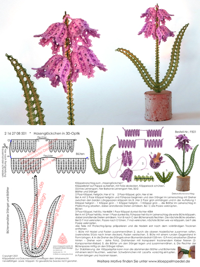 501 Klöppelbrief "Hasenglöckchen" - Blümchen in 3D-Optik