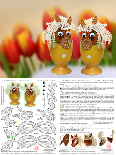 Klöppelbrief Hütchen „Pferdchen“ für Eier