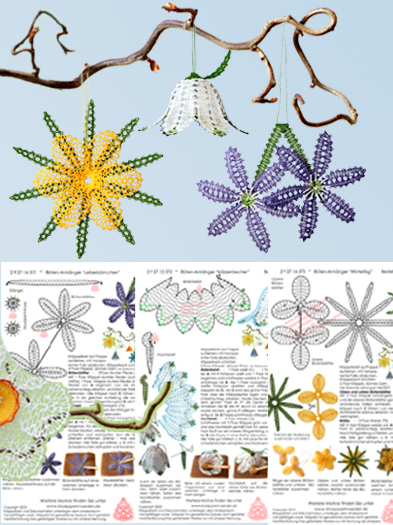 3 Klöppelbrief "Frühblüher" in 3D-Optik zum Aufhängen
