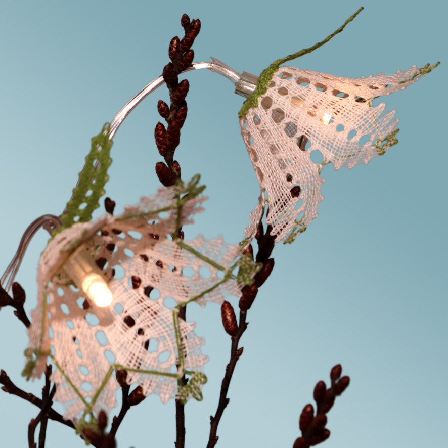Klöppelbrief "Märzenbecher" - Blümchen in 3D-Optik für Lichterkette