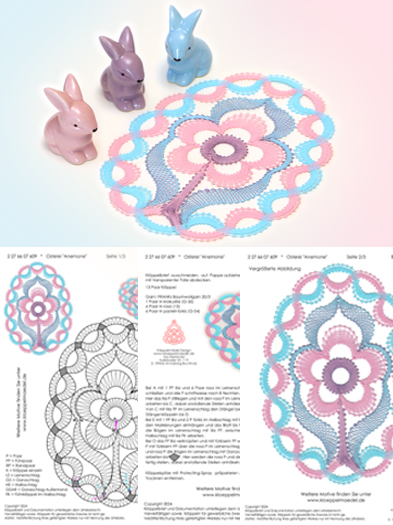 534 Klöppelbrief "Drei kleine Blütendeckchen"...