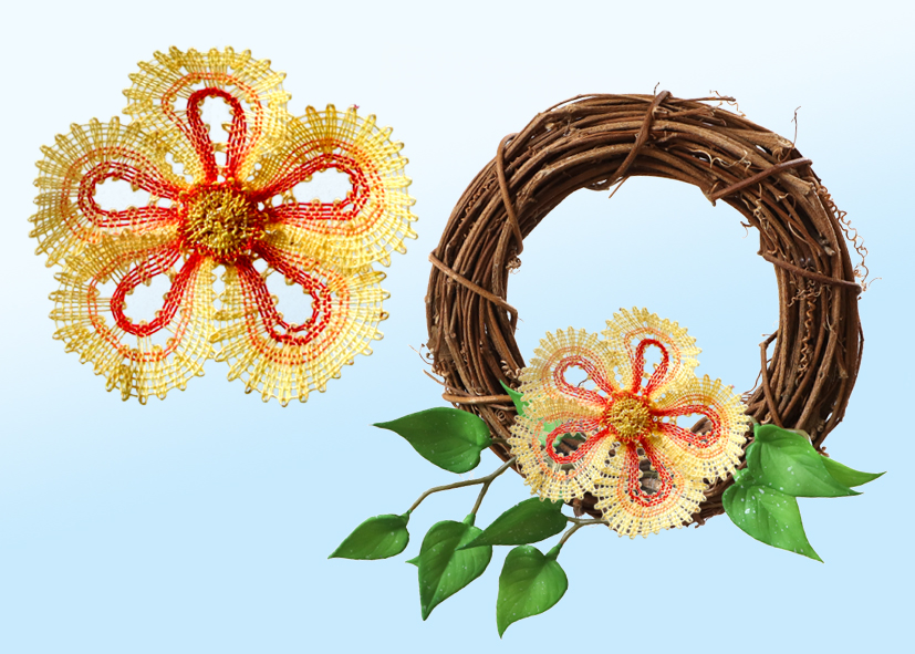 Klöppelbrief Blüte "Primel" in 3D-Optik zum Aufhängen