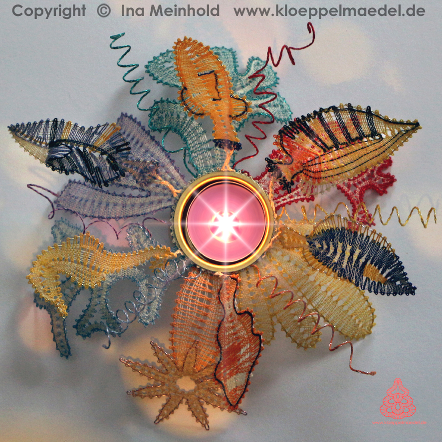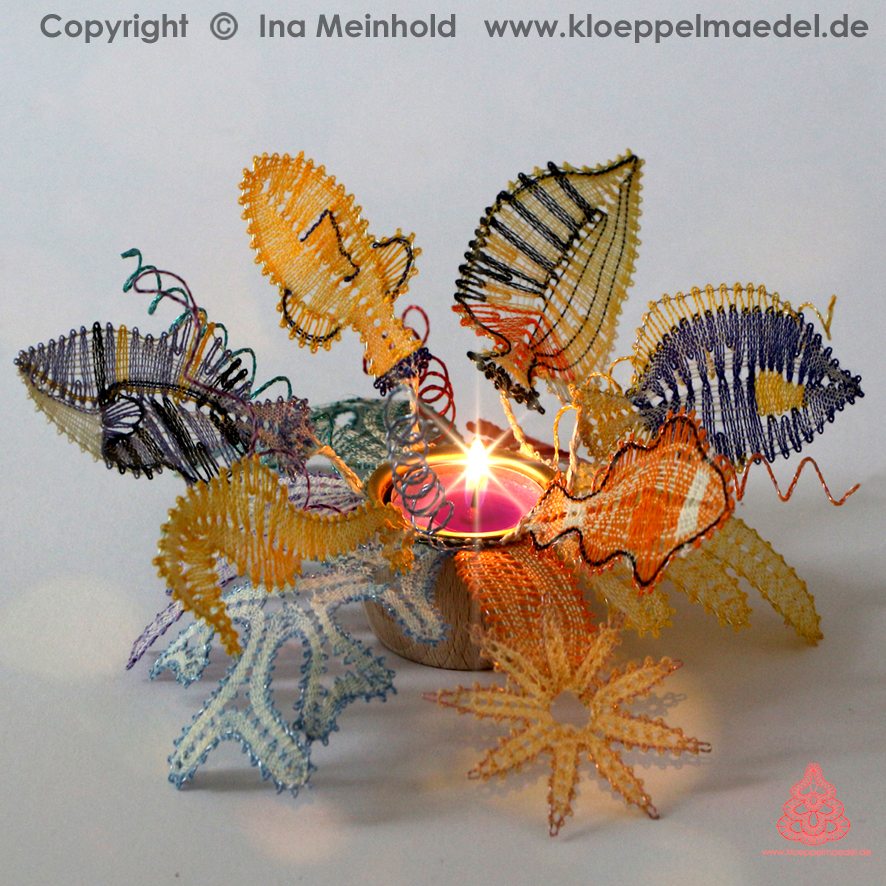 Klöppelbrief „Südsee-Zauber“ für Holz-Teelichthalter