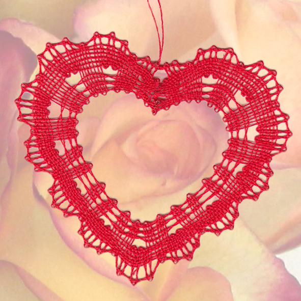 Klöppelbrief Anhänger Herz "Schön, dass es dich gibt"