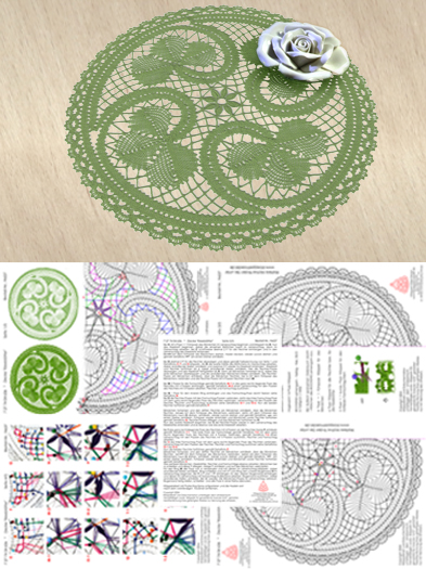 636 Klöppelbrief Decke „Kleeblätter“