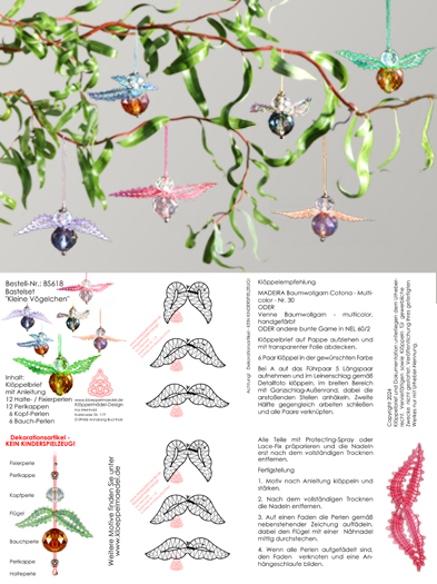 hochwertigen Kristall-Perlen und Zubehör in Silberfarbe für 6 Vögelchen