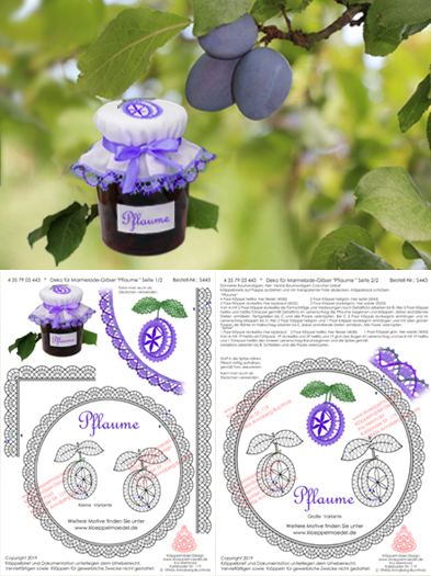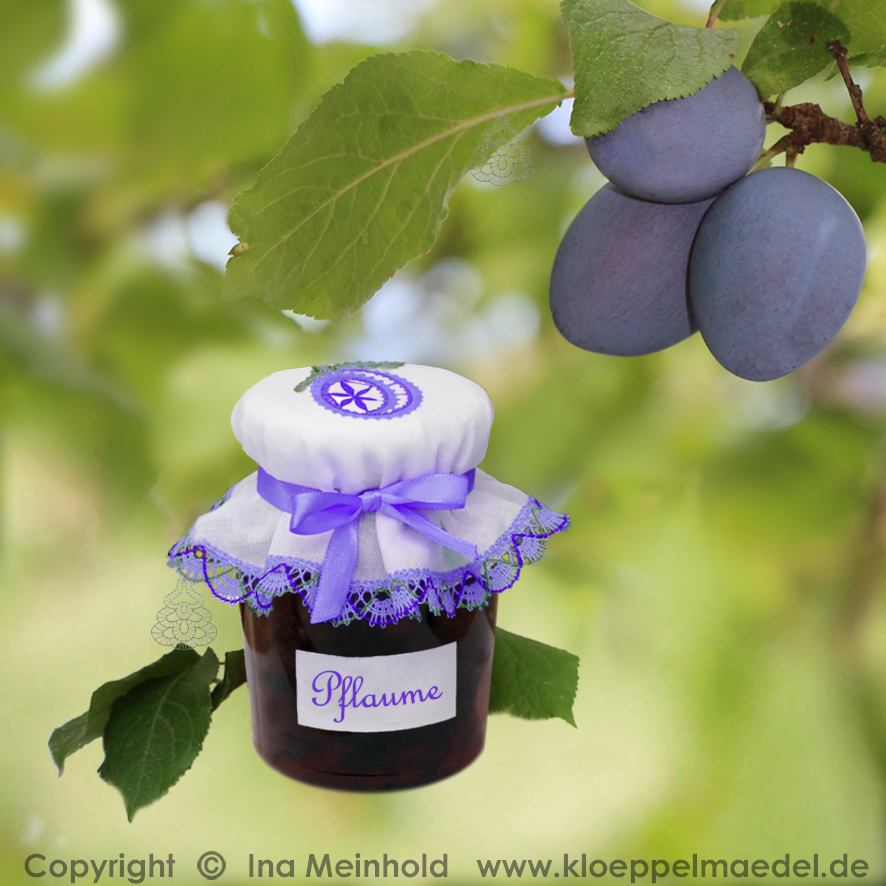 442 Klöppelbrief Deko für Marmelade-Gläser "Pflaume"