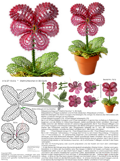 616 Klöppelbrief "Stiefmütterchen" - Blümchen in 3D-Optik
