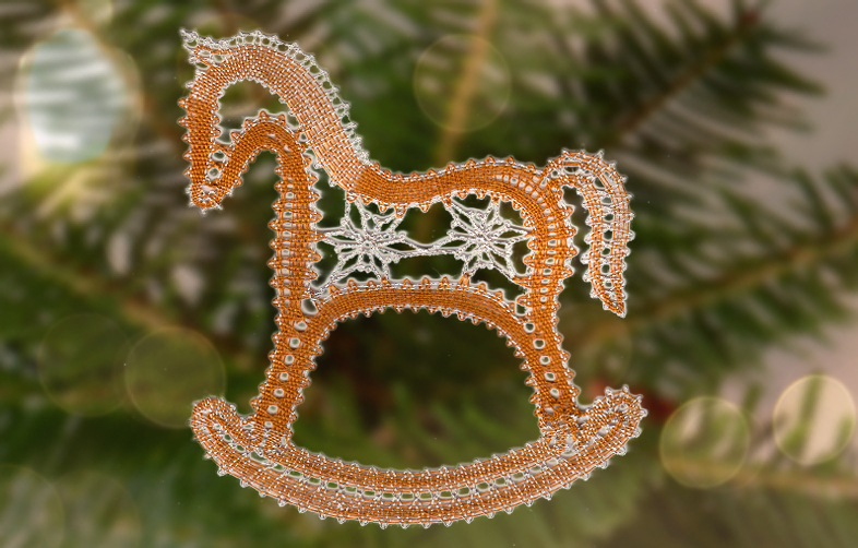 Klöppelbrief "Schaukelpferd" aus der Serie "Nostalgie"