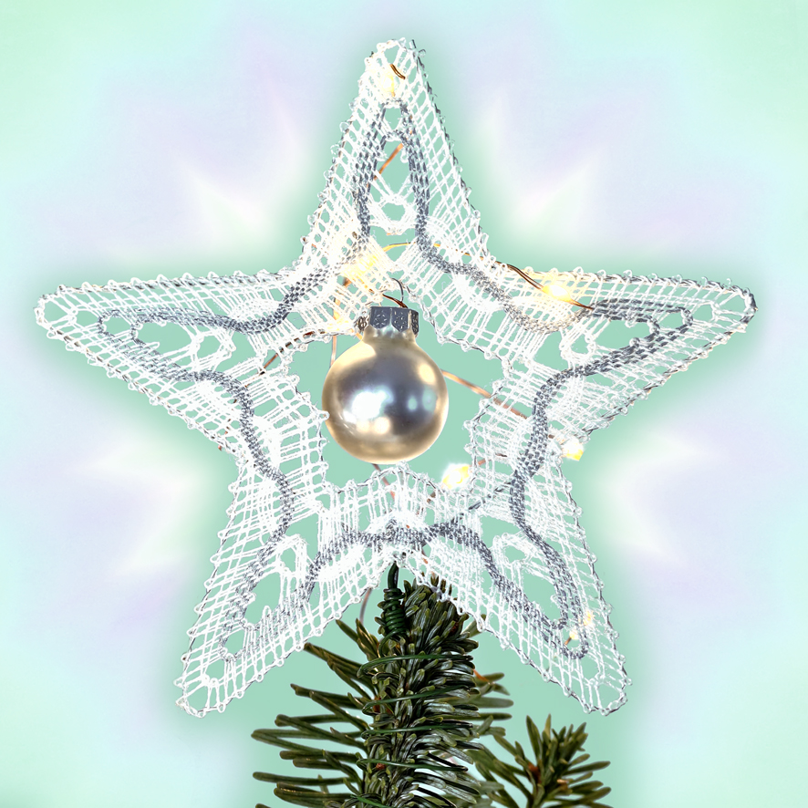668 Klöppelbrief Christbaumspitze "Sternenzauber" passend zum Baumbehang für Christbaumkugeln / Spiegelbeeren bis 2,5 cm